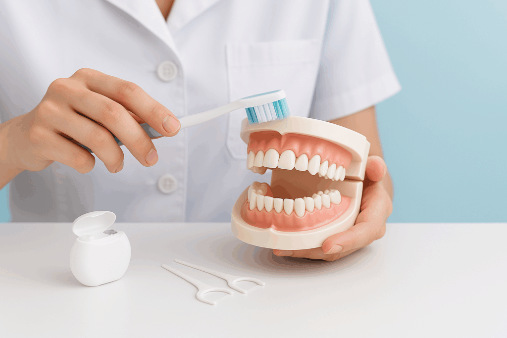 歯ブラシだけでは届きにくい部分があります。デンタルフロスや歯間ブラシ、ワンタフトブラシなどの清掃補助用具を併用することで、根元や歯間の汚れも効果的に除去できます。